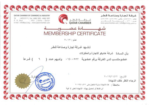 HTCC Membership Certificate at Qatar Chamber Of Commerce